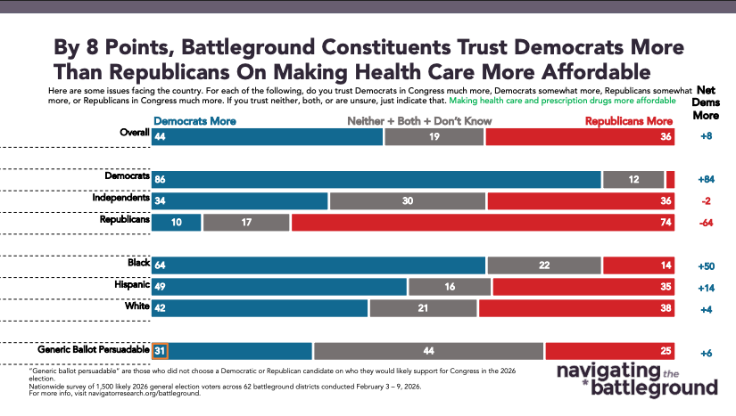 Democrats in Congress have an 8-point trust advantage over Republicans on making health care more affordable.
