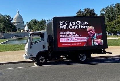 Ahead of RFK Jr.’s appearance before the Senate Finance Committee (see more below), the Committee drove a mobile billboard around Capitol hill to be held accountable: